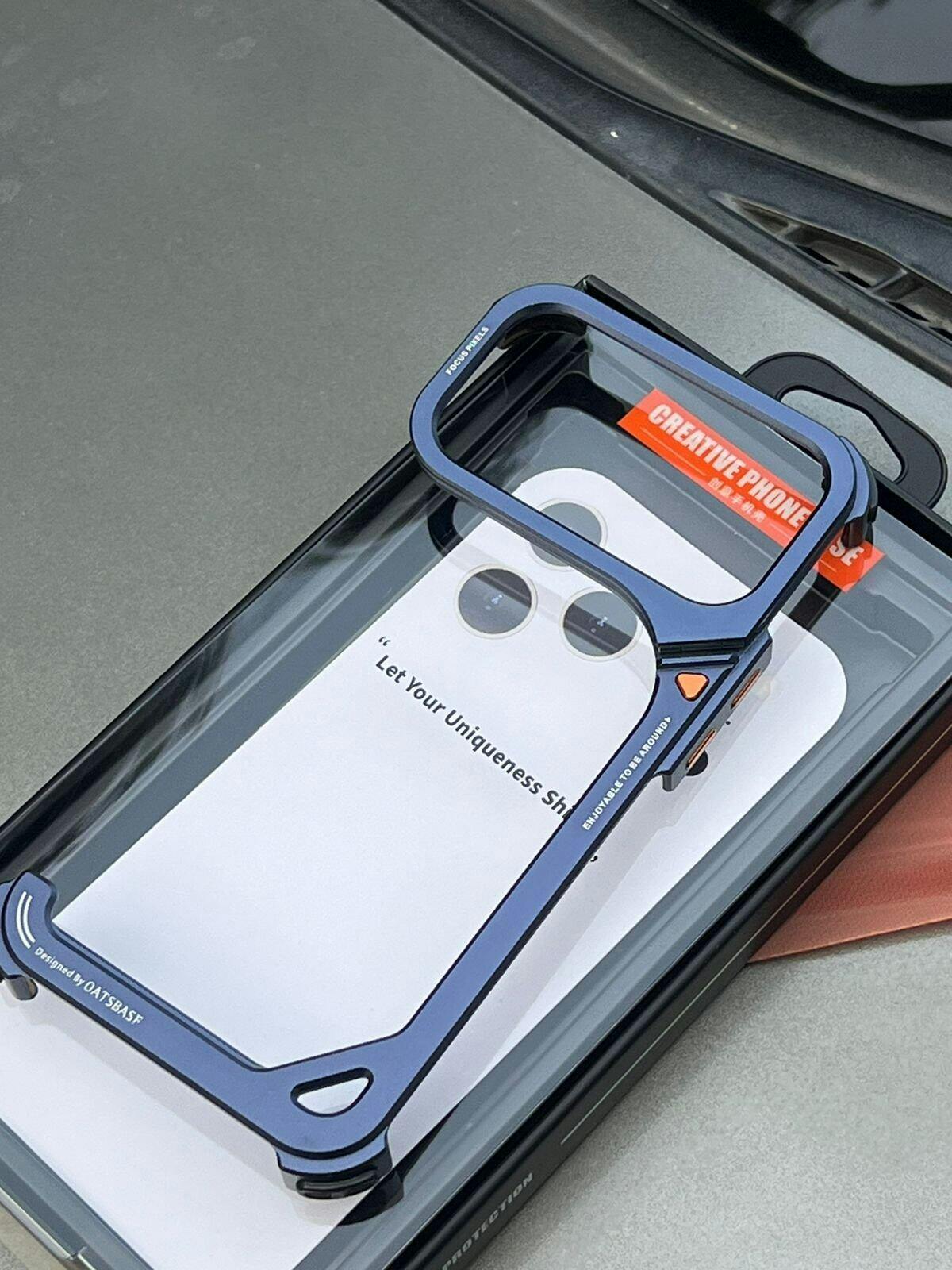 Enjoy a whole new level of comfort with this high-end metal frameless phone case, designed to give you the true bare-phone feeling. This iPhone 17 cover offers a lightweight, slim design that keeps your device looking sleek and stylish without adding extra bulk. With its “9” shaped design, this 9 shaped case for iPhone 17 Pro Max enhances comfort while maintaining full signal strength, ensuring smooth functionality at all times.