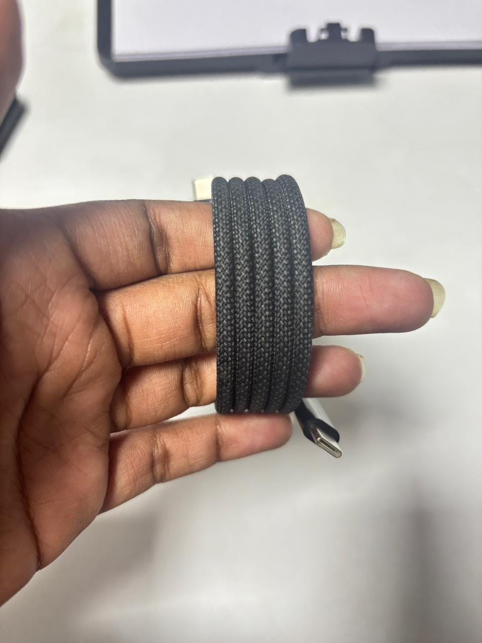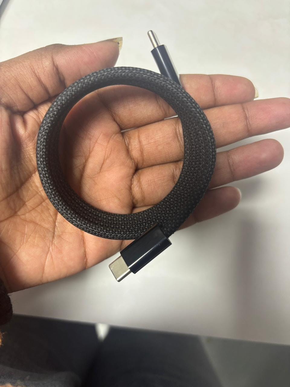 C to C cable with strong braided design. Durable, easy to handle, and made for fast charging.